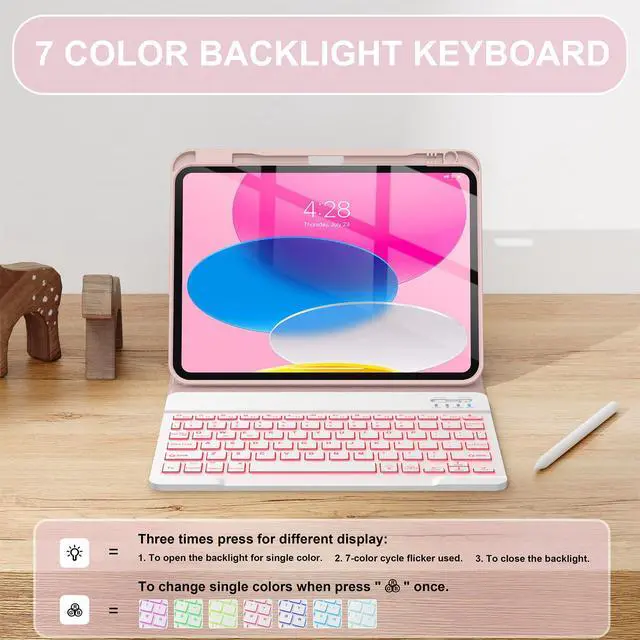 [7-COLOR BACKLIT]: The keyboard for iPad 11/10.9 inch has 7 backlight colors to change that allow you to type comfortably in the dark.You can press the corresponding button to switch to the light you want