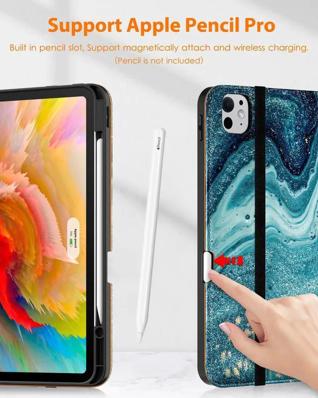 Built-in Pencil Holder - Securely carries and protects your pencil wherever you go. A hole has been designed at the back of the pencil holder that you can easily push pencil out without taking off your iPad Pro 13 inch M4 case