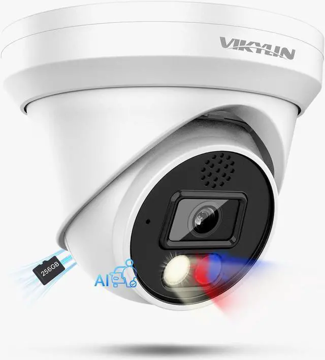 VIKYLIN 4K 8MP PoE IP Dome Camera Active Deterrence (red/Blue LED, Siren), 98ft Night Color Vision F1.0, MicroSD 256GB, 2-Way Audio, Blue Iris, NDAA Compliant