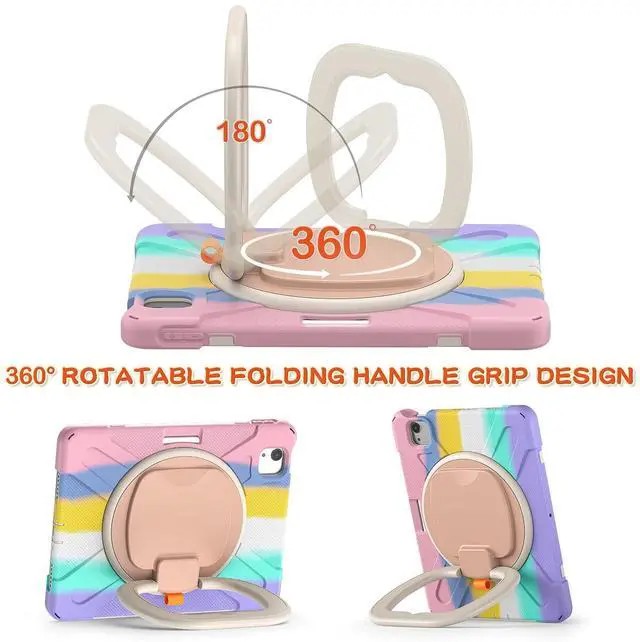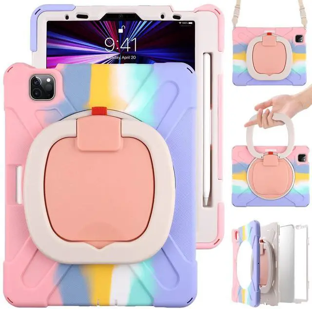 MEEgoodo Case for iPad Air 13 inch 2025 (M3) /2024 (M2) & iPad Pro 12.9 Case 6th/5th/4th/3rd Generation 2022 2021 2020 2018, Tablet Cover with Pencil Holder/Rotating Stand/Shoulder Strap, Colourful Pink
