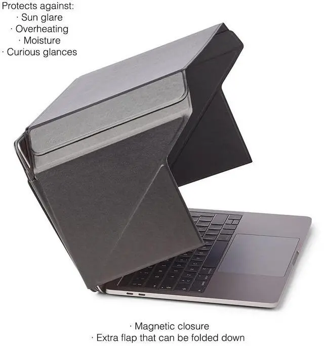 Unique Design with Built-in Stand: The Lux Hood features a foldable stand and a convenient pocket for added functionality. Ideal for working outdoors or in public spaces like trains, planes, or coffee houses, this foldable computer shield is easy to carry and install. The elegant design ensures it seamlessly integrates into your work routine, providing both practicality and style. The first Screen Shade products on the market Patent no. D790551.