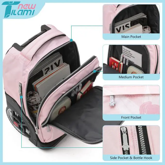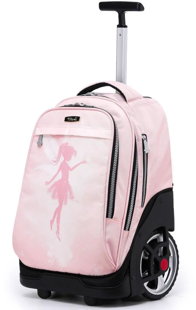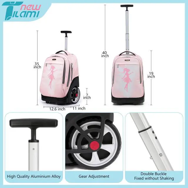 NEW TILAMI Rolling Backpack 19 inch Teens Rolling Backpack Cute Wheeled Computer Laptop Backpack Bookbag Roller Travel Bag College, Flower Fairy (No USB interface)