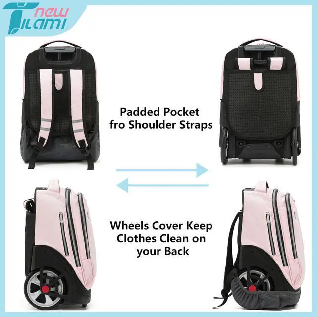 TAKE IT TO THE PLANE - Perfect size of underseat carry on luggage for planes. At least 30lb bearing of rolling backpack from NEW TILAMI, more durable with waterproof material.
