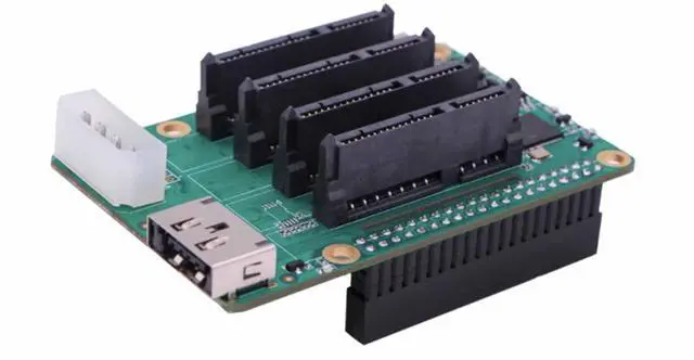 The Penta SATA HAT utilizes the M. 2/PCIe interface on Rock Pi 4 to provide up to 5 SATA ports. This HAT works only with Rock Pi 4 mounted on the heat sink.