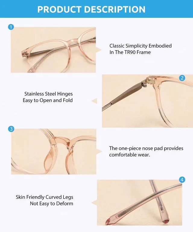 Lightweight and Durable: The unique TR material makes the weight of our blue light-blocking glasses as low as 13g, which will not make you feel uncomfortable when wear them for extended periods