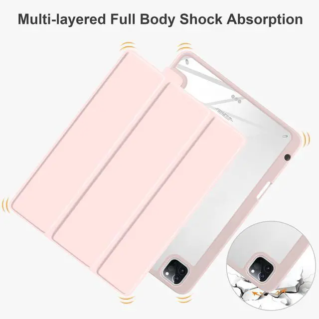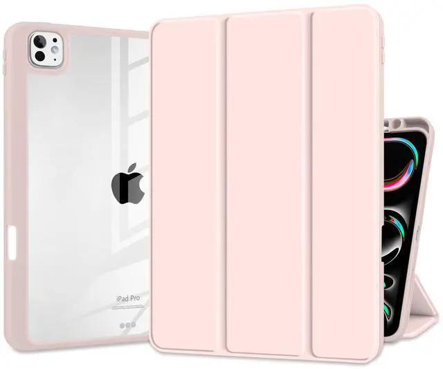 Batianda Hybrid Case for iPad Pro 13-inch 2024 M4 Chip [Built-in Apple Pencil Slot] Stylish Design Premium Cover with Clear Back Shell TPU Bumper Auto Wake/Sleep, Pink