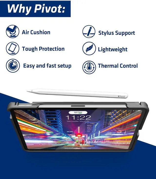 • PIVOT SCREEN COVER & KICKSTAND: The removable PIVOT Screen Cover supports the auto-wake/sleep functions of the iPad and can be used as a stable non-slip surface for viewing the iPad while using the PIVOT Kickstand. Thicker and reinforced with internal ribs for unbeatable strength and d