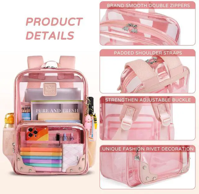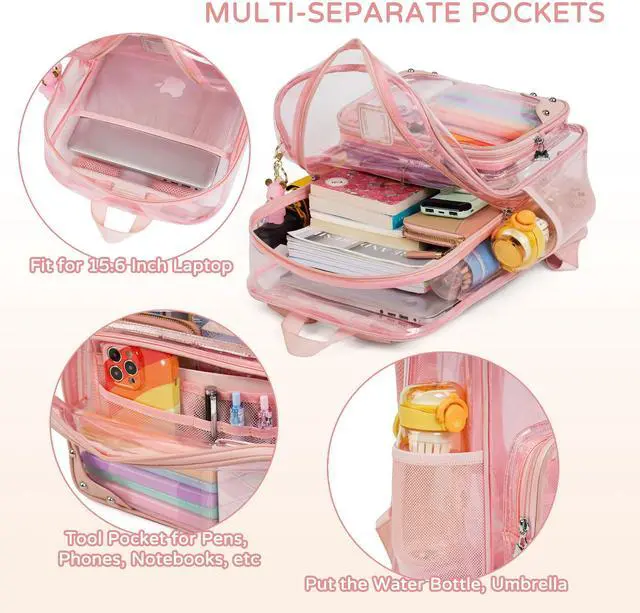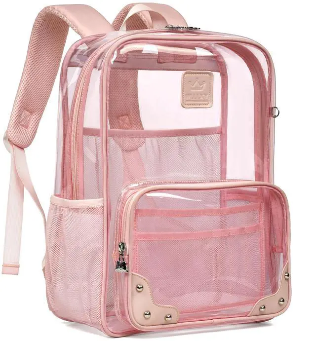 Caoroky knight Clear Backpack Heavy Duty Transparent Laptop Backpacks 15.6 Inch See Through TPU Travel Daypack Large College Bookbag for Women Men Teens Girls Boys students-Pink