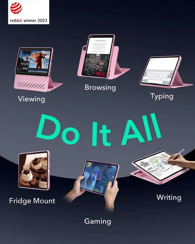 Powerful Versatility: achieve up to 9 different angles, 6 for viewing and 3 for writing, via the dual support brackets and 6 magnetic grooves, then instantly detach for hands-on gaming or to magnetically attach to your fridge