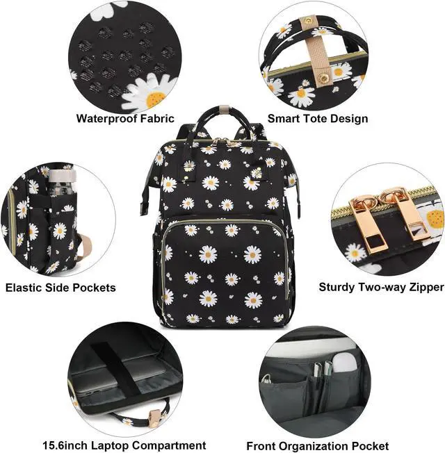 Xunteny Daisy Women Laptop Backpack, College School Backpack Bookbag 15.6 Inch Computer Backpacks for Work Business Travel