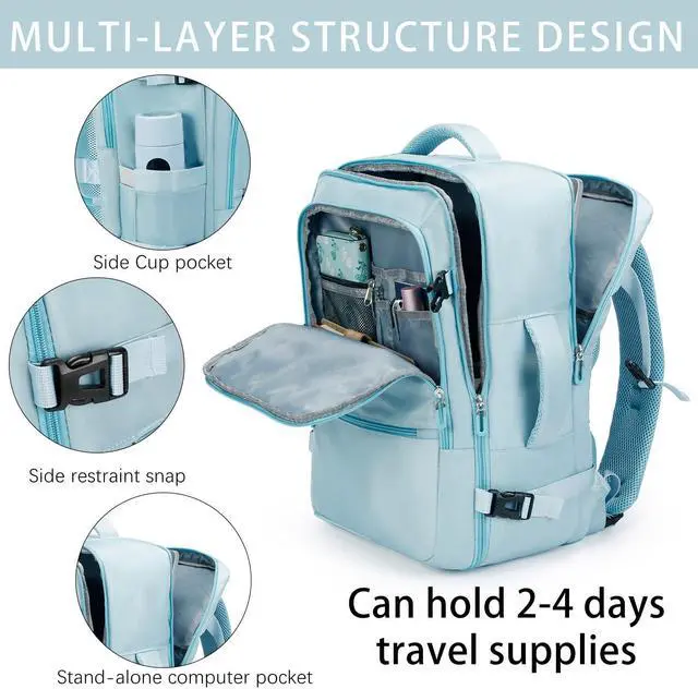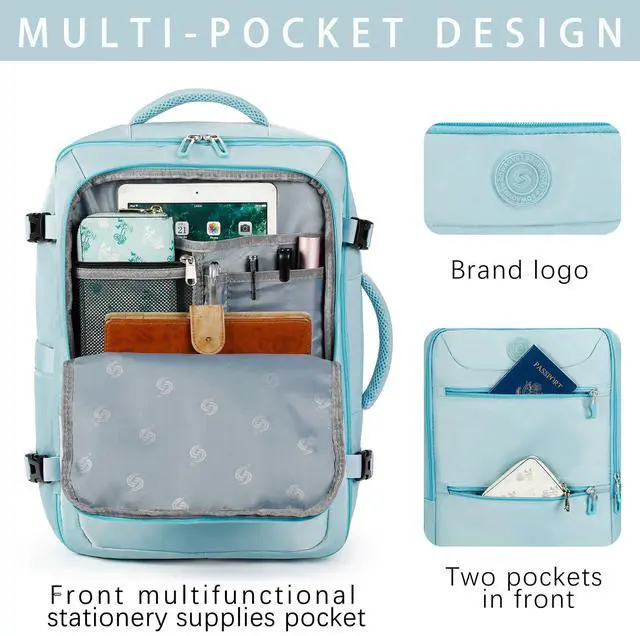 STURFY AND LIGHTWEIGHT, SUITABLE FOR TRAVEL: The travel backpack is made of lightweight and sturdy polyester material, with a zipper that is easy to close and open. This portable backpack meets the personal carry on standards of airlines and can be installed under the overhead luggage rack or seat. You can easily install travel equipment for 2-4 days, equivalent to the capacity of an 18 inch suitcase, making it a good choice for weekend vacations and business trips
