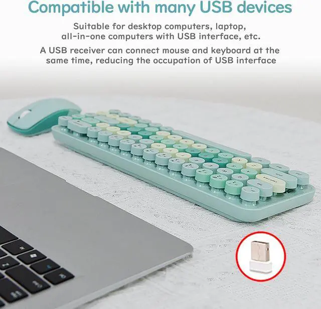 Wireless connection2.4G wireless transmission technology, the maximum transmission distance can reach 10m. The wireless connection solves the desktop clutter problem caused by the data cable, suitable for those who like to have a neat desktop. One USB receiver can connect the mouse and keyboard at the same time, reducing the occupation of the USB interface.