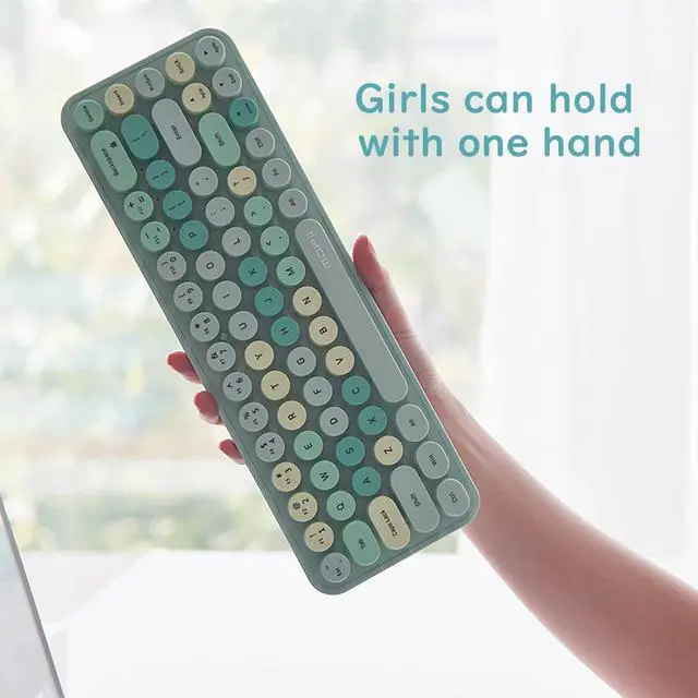 Nice appearance, small sizeThe compact 68-key design can be easily held by women with one hand, small and portable, and realizes various functions through the combination of Fn and Shift keys. The candy-colored round keycaps look great, it's a gifts for girls and children.