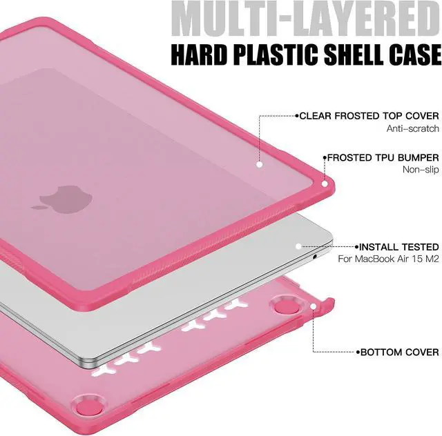 Batianda Ultimate Laptop Case for M4 MacBook Air 15 inch 2025 A3241 2024 M3 A3114 2023 M2 A2941 Model Matte Carbon Fiber Edges Shockproof Anti-Scratch and Anti-Fingerprint, Pink