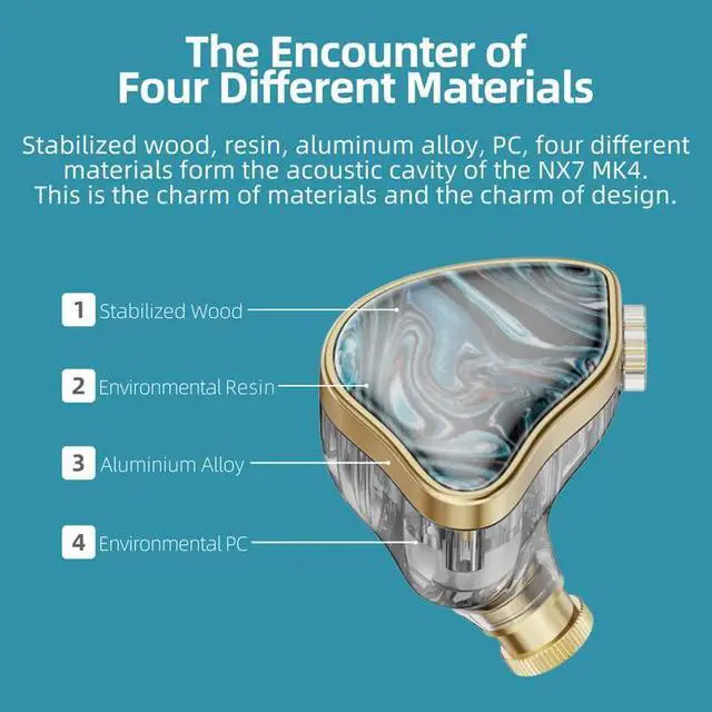 Premium Materials & Elegant Look: Constructed from stabilized wood, resin, aluminum alloy, and PC, the NX7 MK4 iem ear monitor provides warm, rich sound. Its stunning design makes it one of the best in ear monitors for both aesthetics and performance.