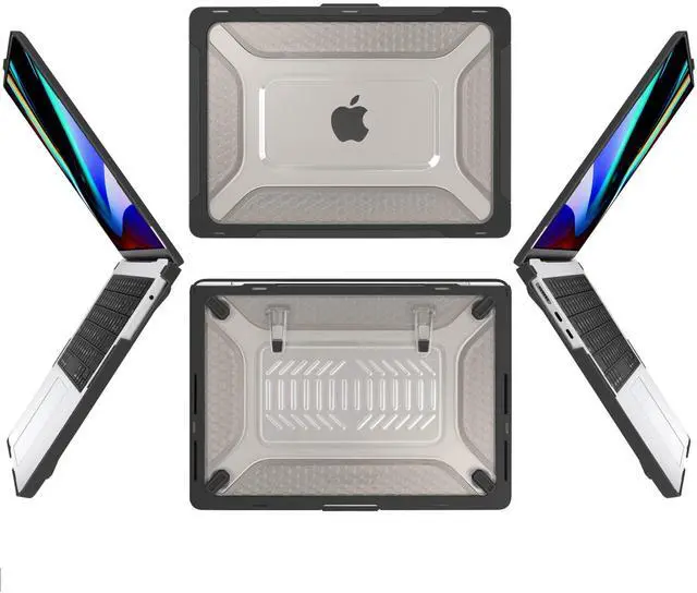The case features a foldable kickstand that allows you to prop up your MacBook Air at an angle, making it easier to work on and more comfortable and ergonomic experience to use.