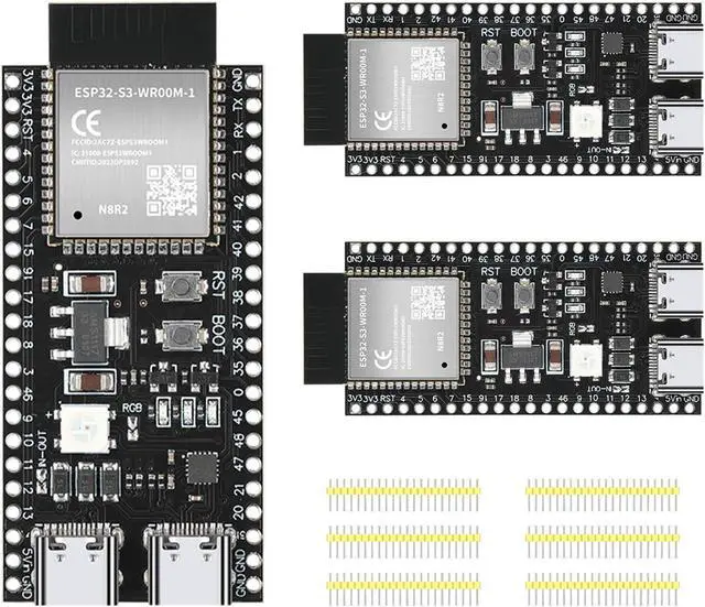 YEJMKJ 3pcs ESP32-S3-DevKitC-1-N8R2 Development Board ESP32 S3 WiFi + Bluetooth MCU Module, Dual Type-C ESP32-S3-WROOM-1 Cores Microcontroller Processor Integrates Complete Wi-Fi and BLE Functions