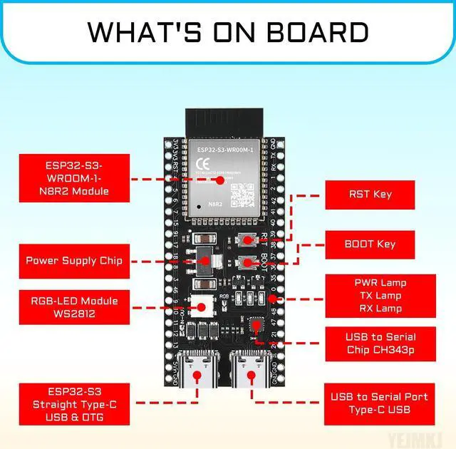 [User-Friendly Design]: This ESP32-S3 board features a compact size, easy-to-use interface, and compatibility with popular development tools, making it suitable for both beginners and experienced developers.