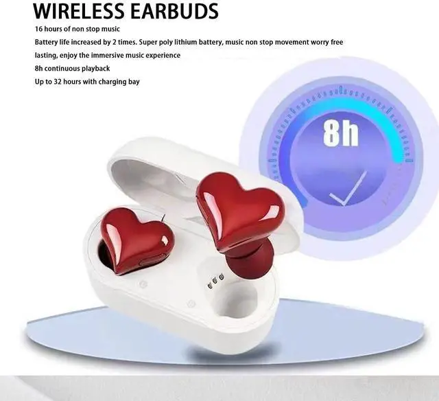 HEART SHAPED DESIGN: Bluetooth earbuds features a unique heart shaped design, giving you a stylish and personalized headphone experience.
