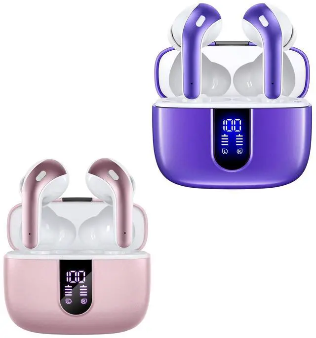TAGRY 2 Sets X08 Pink and Phantom Purple Bluetooth Headphones True Wireless Earbuds 60H Playback Ear Buds with Wireless Charging Case in-Ear Earbuds with Mic