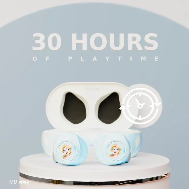 Features: Easily play or pause your favorite Disney tunes, skip to the next or previous track, adjust the volume, answer, or reject phone calls, and hang up, all with a simple touch. Up to 30 hours of playtime on a single charge with our built-in charging case and a seamless 33ft wireless connection distance.