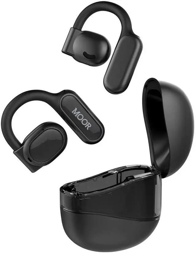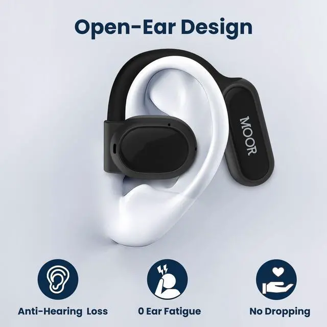 MOOR OpenWave Open Ear Headphones + in Ear Wireless Earbuds, ENC Noise Cancelling Earbuds, Premium Stereo Sound, Waterproof Earbuds for Sport, Work (Black, White)