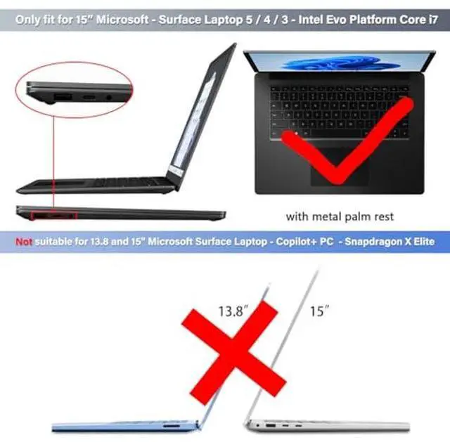 Batianda Shockproof protective case compatible for Microsoft Surface Laptop 5/Surface Laptop 4/Surface Laptop 3 15 Touch Screen.Model Numbers: 1872/1873/1953/1979.Note: different models and palm rest desgin correspond to different case,Not suitable for 15 inch Microsoft Surface Laptop 6 2024 and 15" and 13.8" Microsoft - Surface Laptop - Copilot+ PC - Snapdragon X Elite 2024 release