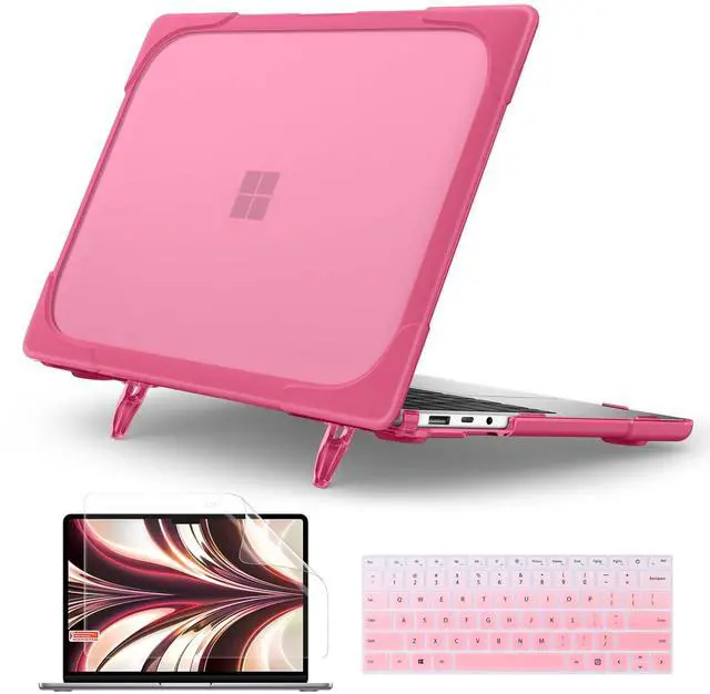 Batianda Heavy Duty Case for Microsoft Surface Laptop 5 4/3rd 15 Touch Screen with Fold Kickstand and Keyboard Cover - Shockproof Protective Cover for Enhanced Durability and Comfortable,Pink