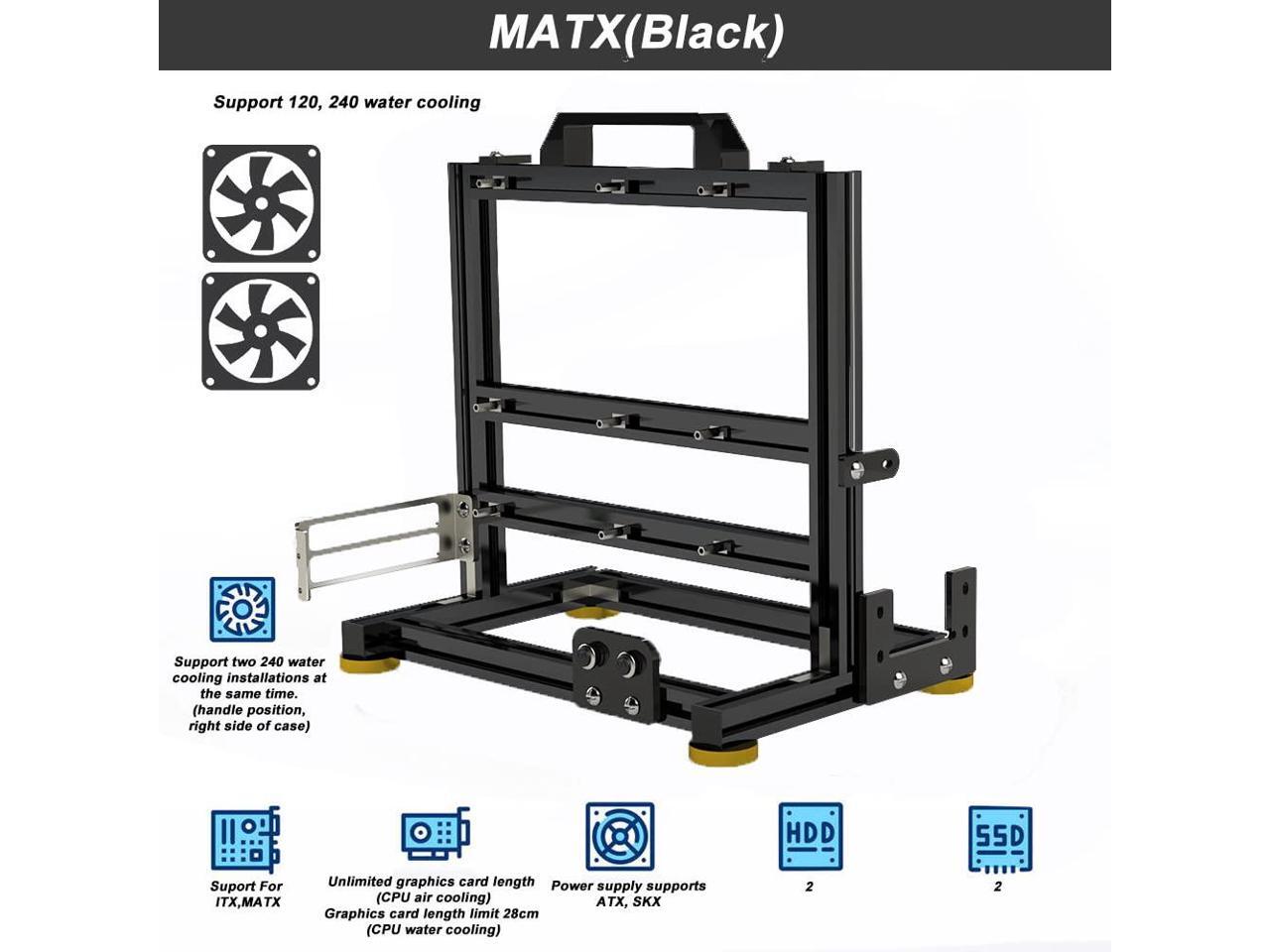 MATX Size: 30*28*20cm (height without handle).The product only includes open case accessories, and does not include other products outside the open case. The open case frame needs to be installed by itself.