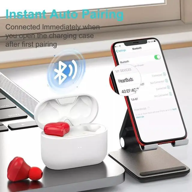 GOWENIC Earbuds, Stereo Sound Bluetooth Headphones with Noise Canceling, Heart Shaped Design and 3 Pairs Earbuds, for Phone Laptop