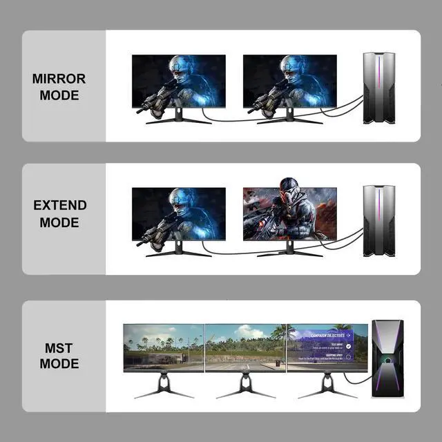 Multi-functionCompatible with all DisplayPort (DP port ) devices and DisplayPort MST Hub.We have tested on 1080TI GPU, GTX 1070, Nvidia 980ti, Nvidia 2080Ti and Dell S2417, ,Acer Predator X34, ASUS MG279Q, LG 34GK950F-B, ViewSonic VX4380 etc