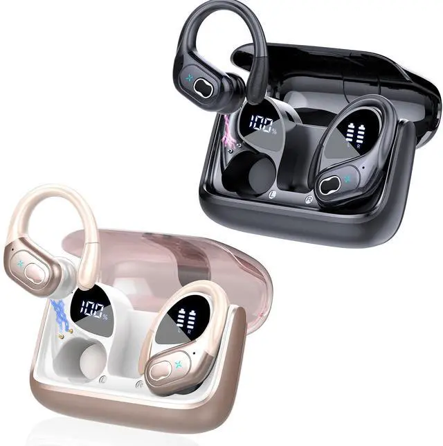 75 Hours Playtime and Dual LED Display: Running headphones provides up to 15 hours continuous using time on a single charge, portable charging case can charge the earbuds for 5-6 times, giving 75 hours of a total playtime. Whether on the road or in daily life, it will provide unparalleled convenience and smart experience. The dual LED display on earphones accurately display the remaining power of charging case and the charging progress of Wireless ear buds.