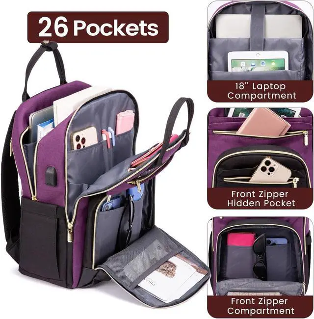 LOVEVOOK Backpack for Women,Laptop Backpack Women,Fits 18 Inch Laptop Computer Bag,Teacher College Backpack Purse,Fashion Waterproof Travel Work Anti-theft Backpack for Traveling on Airplane Daypack