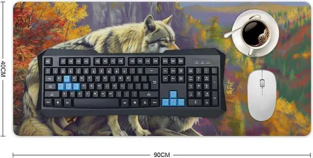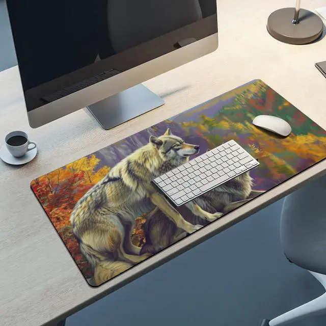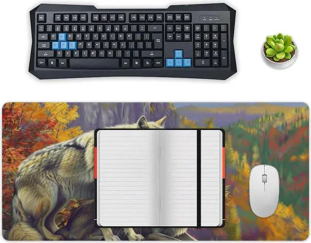 QEOPGNE Wolves Mousepad Large Wolf Mouse Pad Gaming Autumn Mountain Wolf Desk Mat Full Desk Keyboard Computer Pad Wildlife Animals Computer Mouse Mat for Gaming Office Home 35.4 x 15.7 Inch