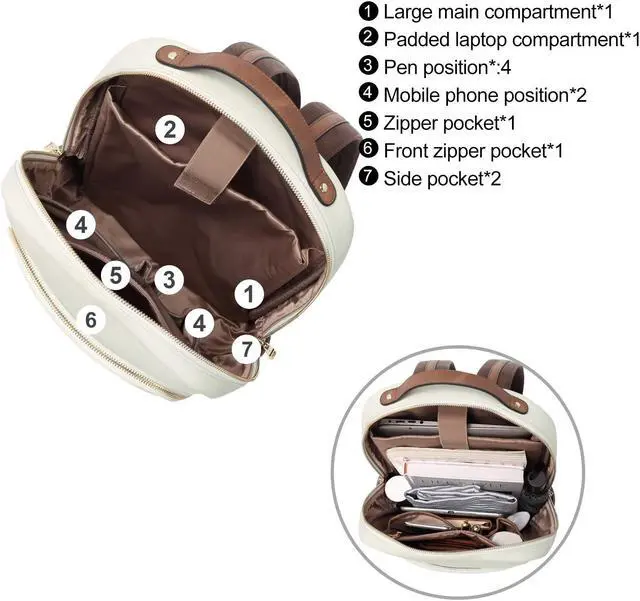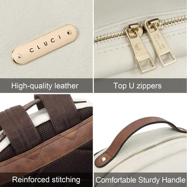 Top Quality Material: The laptop backpack is made of top vegan leather with polyester lining, which is durable for using. Simple and clean style with gold colored hardware and CLUCI logo, U-shaped zipper closure expand the roomy of womens laptop backpack. Reinforced stitching allows it to withstand heavy loads.
