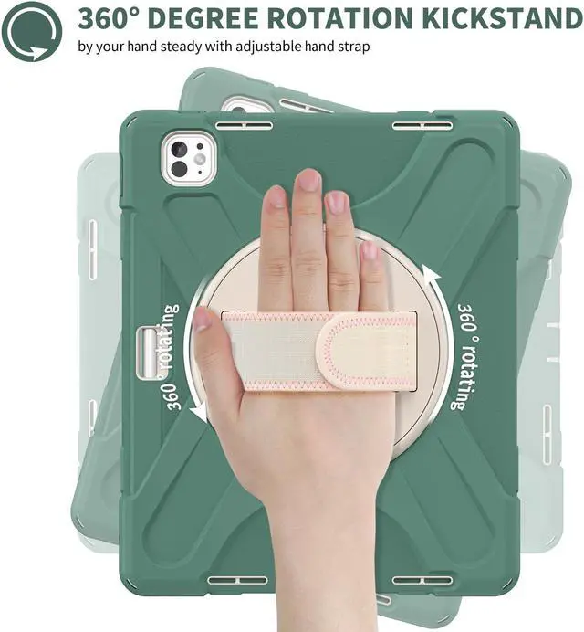 360° Rotating Hand Strap Design: With a 360° rotating hand strap design, this case offers versatile handling options, allowing you to comfortably carry your iPad Pro in any orientation, making it ideal for on-the-go use.