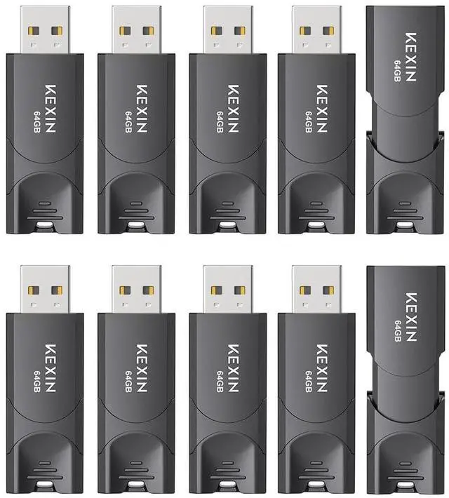KEXIN 64GB Flash Drive 10 Pack Thumb Drive USB Flash Drive Zip Drive USB 2.0 Memory Stick Data Storage (64GB, Black)