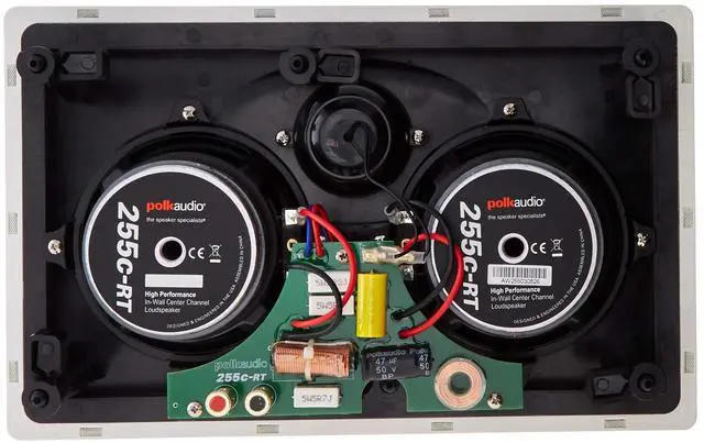 The Vanishing Series 255c-RT is the centerpiece of a world-class stealth home theater. Paintable to match any decor, this in-wall center channel speaker blends in perfectly with its surroundings. Anchoring all the action without attracting attention, the 255c-RT ensures all you see is screen, and all you hear is dynamic, crystal clear sound. Patented bass venting design smoothly transitions air flow, eliminating turbulence and distortion, for deeper, more efficient bass impact. The unique, wafer-thin grille is magnetically secured to deliver nearly transparent, ultra-small perfs and dynamic, unimpeded sound.