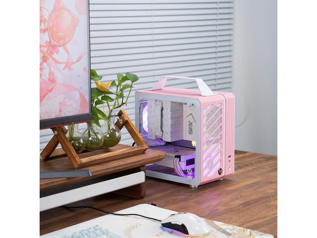 Mechanic Master Cool Cube Series C24 Mini-ITX Case/Alumium/Steel/GPU Length Within 245mm, SFX/L PSU Computer Case (Sakura Pink)
