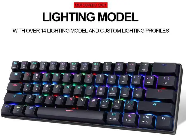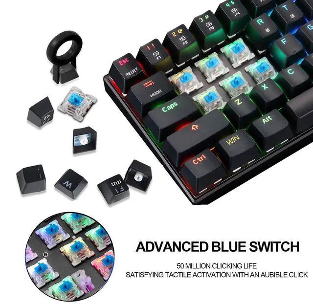 MOTOSPEED 60% Mechanical Keyboard Portable 61 Keys RGB LED Backlit Type-C USB Wired Office/Gaming Keyboard for Mac, Android, WindowsBlue Switch
