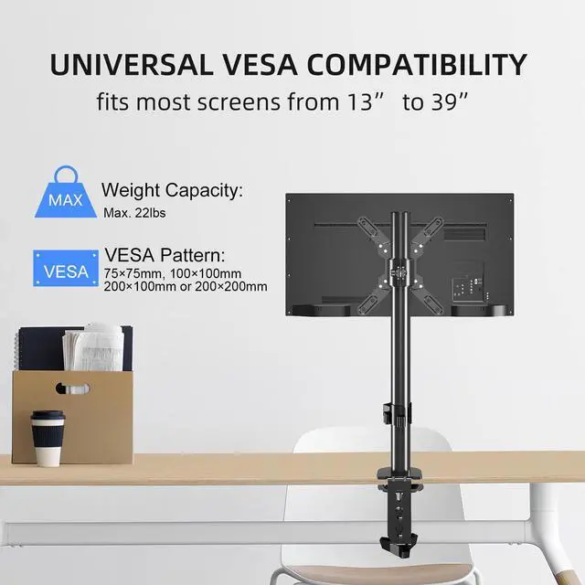 Single Monitor Mount, Single Monitor Desk Mount with VESA Extension Kit from 75×75 to 200×200mm fits 13-39 inch Screens, Vesa Mount