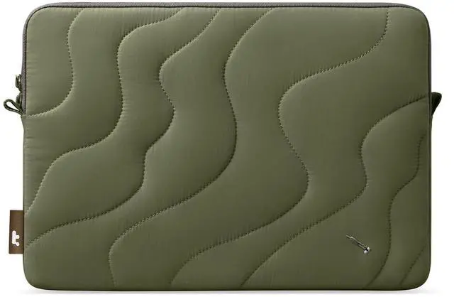Terra Elegance: Crafted from recycled materials, this puffer laptop sleeve combines elegance with sustainability. Its distinctive contour line design creates timeless aesthetics, perfectly tailored to embrace your cherished MacBook