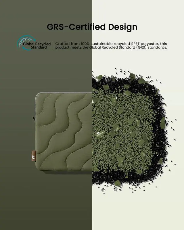 Highly Sustainable & Innovative: Made from innovative 100% recycled fabrics, the Terra-A27 Laptop Sleeve is robust and dedicated to our planet's preservation. Every detail is meticulously chosen from its recycled nylon exterior to the trusted strength of YKK NATULON Plus Sustainable Zippers. Every element, from its sustainable fabric to its recycled ribbon woven label, reflects our commitment to saving our planet