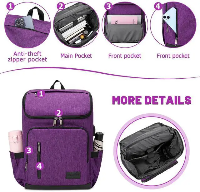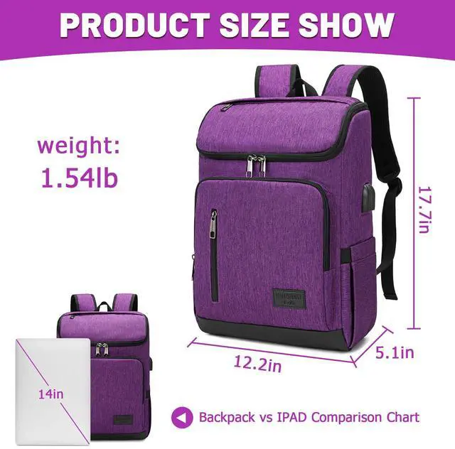 YALUNDISI Laptop Backpacks Travel Backpack Carry On Backpack Casual Daypack with USB Charging Port for Men Women Purple