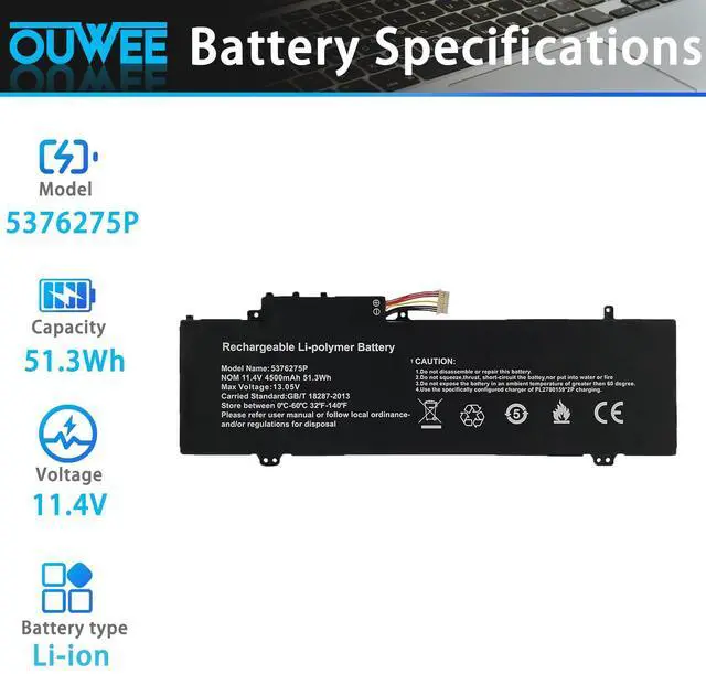 OUWEE 5376275P Laptop Battery Compatible with Gateway GWTN141-10BK GWTN141-4 GWTN156-5BL Gwtn141-4bl UTL-509068-3S NV-509067-3S Series UTL-509068-3S NV-509067-3S 11.4V 51.3W h 3-Cell