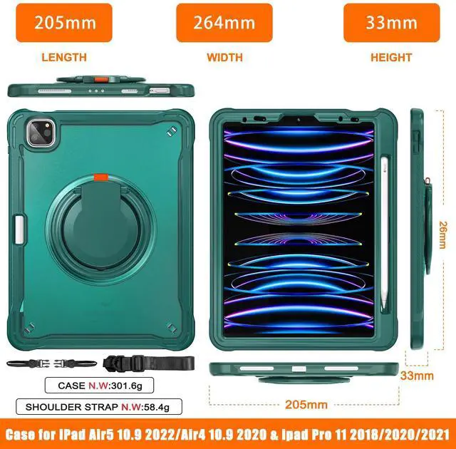 Exclusively designed Shockproof Case for New iPad Pro 11 Inch 2022 4th M2 Chip (Model A2759/A2435/A2761/A2762) and 2021 3rd Generation (Model Number: A2377/A2459/A2301/A2460) and iPad Pro 11 inch 2020 2nd Generation (Model Number: A2228/A2068/A2230/A2231),NOT fits other Generations iPad.