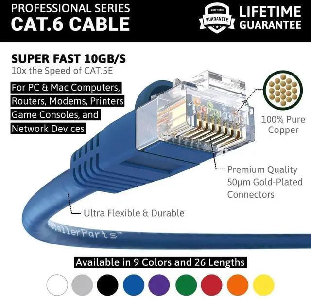 High quality 100% copper Installerparts patch cables are made f 100% bare copper wire with 50 micron gold plated RJ45 plugs. Our cables use high quality, long-lasting materials and feature A highly durable design at an affordable price.