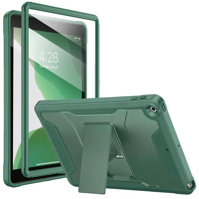 Soke Case for iPad 9th/8th/7th Generation 10.2-Inch (2021/2020/2019 Release), with Built-in Screen Protector and Kickstand, Rugged Full Body Protective Cover for Apple iPad 10.2 Inch - Midnight Green