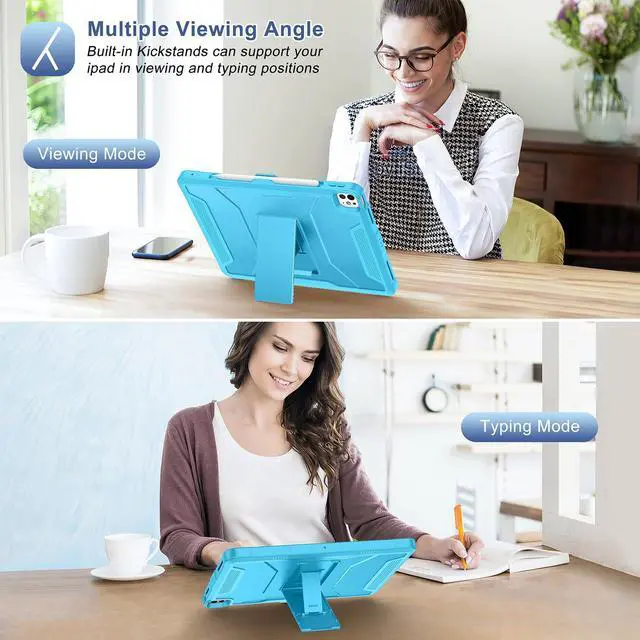 Soke Case for iPad Air 13 Inch M3/M2 (2025/2024),iPad Pro 13 Inch M4,iPad Pro 12.9(2022 2021 2020,6th/5th/4th Gen), Rugged Shockproof Protective Cover with Built-in Kickstand - Cyan Blue