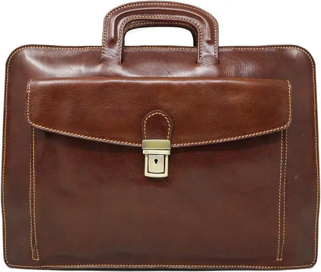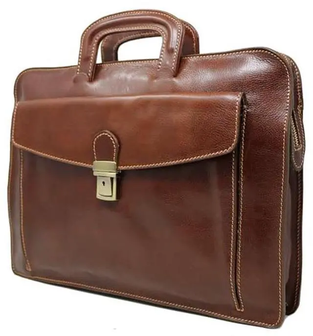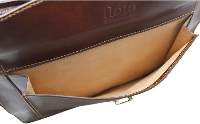 The Milano Laptop Sleeve is made with full grain leather and finished with brass or stainless steel hardware. The calfskin leather for this bag was hand tanned Etruscan style in the heart of Tuscany to soften, patina, and develop a silky touch. Only vegetable extracts and natural oils were used to create rich, vibrant color and a tender, semi-gloss finish. The inside is leather lined for extra durability. Milano Sleeve comes in Vecchio Brown. It fits all laptops up to 17". Made in Italy.